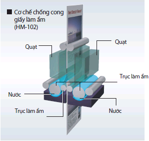 Chống cong giấy dạng làm ẩm (với tùy chọn phụ, bộ làm ẩm HM-102): ngoài việc loại bỏ tình trạng cong giấy bằng cách làm ẩm, HM-102 còn kiểm soát được sự dính giấy bằng cách loại bỏ nhiệt và giảm thiểu tối đa tĩnh điện trên giấy, sử dụng hiệu quả cho giấy không tráng phủ.