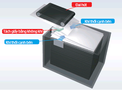 - Hệ thống nạp giấy tiên tiến với cơ chế Air suction.