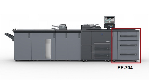 PF-704 là bộ nạp giấy 3 khay, là tùy chọn không thể thiếu cho hệ thống in KTS Konica Minolta bizhub PRESS C8000; đáp ứng các yêu cầu cao nhất về khả năng nạp giấy công suất lớn, thời gian chạy bài dài, đảm bảo hệ thống vận hành ổn định và linh hoạt với nhiều loại giấy khác nhau, rất thích hợp cho các nhà in thương mại mở rộng các ứng dụng in đa dạng.