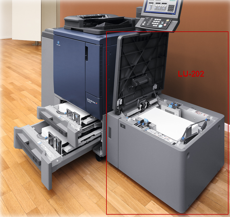 LU-202 là bộ nạp giấy 1 khay với khả năng chứa giấy tối đa 2.500 tờ, giúp tăng khả năng chứa giấy và tối ưu hóa thời gian nạp giấy lại cho người dùng. LU-202 thích hợp cho người dùng có nhu cấu muốn tăng khả năng chứa giấy cho hệ thống bizhub PRESS hiện tại và những người dùng muốn sử dụng đồng thời với khay nạp giấy MB-506.